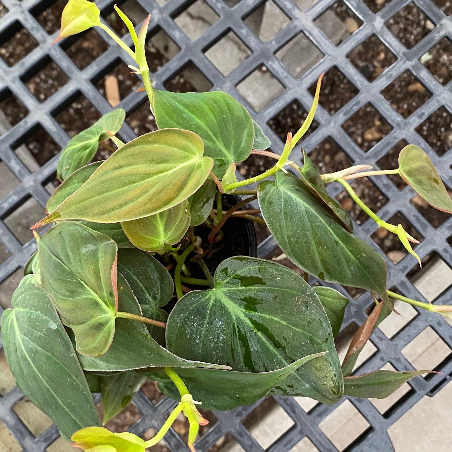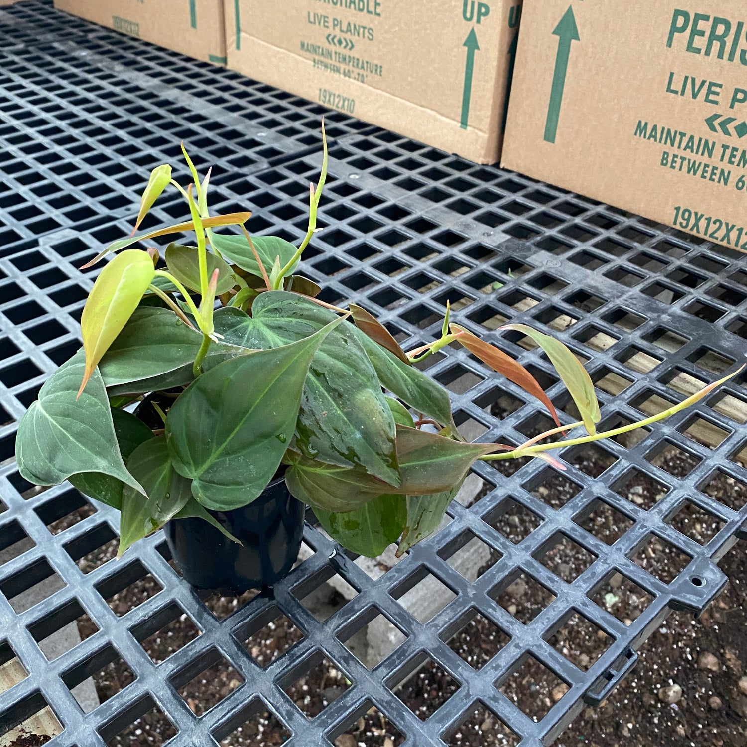 Meet the Philodendron Micans, a sophisticated trailing plant distinguished by its velvety, heart-shaped foliage that deepens in color as it matures. This versatile specimen adapts well to both climbing and cascading growth patterns, making it ideal for shelves, hanging displays, or moss poles. Maintain consistent moisture with weekly watering—approximately one-quarter of a 16oz bottle per session. Position in medium to bright indirect light for optimal leaf development. Suitable for 4" or 6" containers; if using a pot without drainage, establish a 1" pea gravel base to prevent root complications. Please note this variety is toxic to pets. Your purchase includes a comprehensive care guide to support your plant parenting journey.
