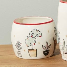 there is no drainage hole so you will need to line the bottom of the planter with 1" pea gravel before you pot the plant.
