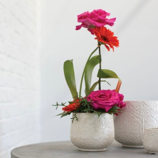 there is no drainage hole so you will need to line the bottom of the planter with 1" pea gravel before you pot the plant.