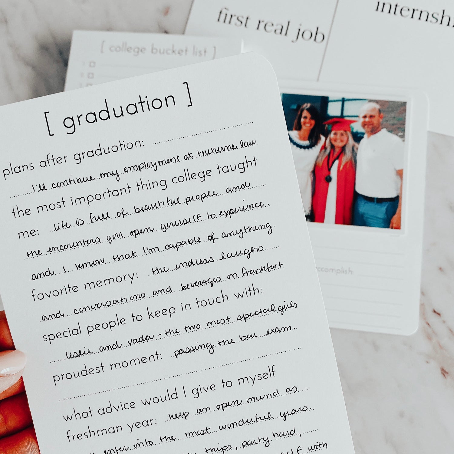 college years documents the traditional, four year higher education experience. this journal highlights college commitment, freshmen firsts, spring breaks, internships and much more. special pages include a college bucket list and a graduation reflection.